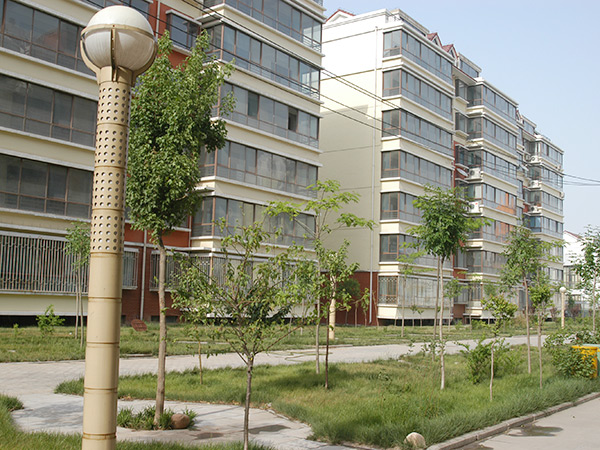 小区于2004年5月开工建设,,,2005年8月一期工程完工交付使用,,,施工质量优良。。。。。小区妄想用地25.4公顷, 住宅楼46栋,住房1825套, 住宅总修建面积21万平方米。。。。。小区楼宇装置电梯的有21栋楼,,,共计43部电梯,,,绿化面积7.5万平方米,绿化笼罩率达35%,工程质量及格率达100%,优良率达70%。。。。。